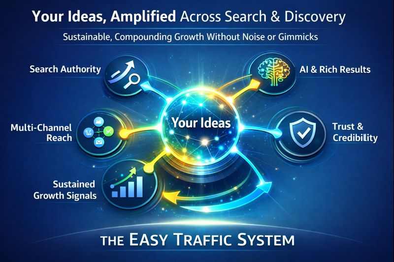A sustainable system to amplify your content, build search trust, and grow real, compounding visibility across search and discovery channels — without gimmicks.